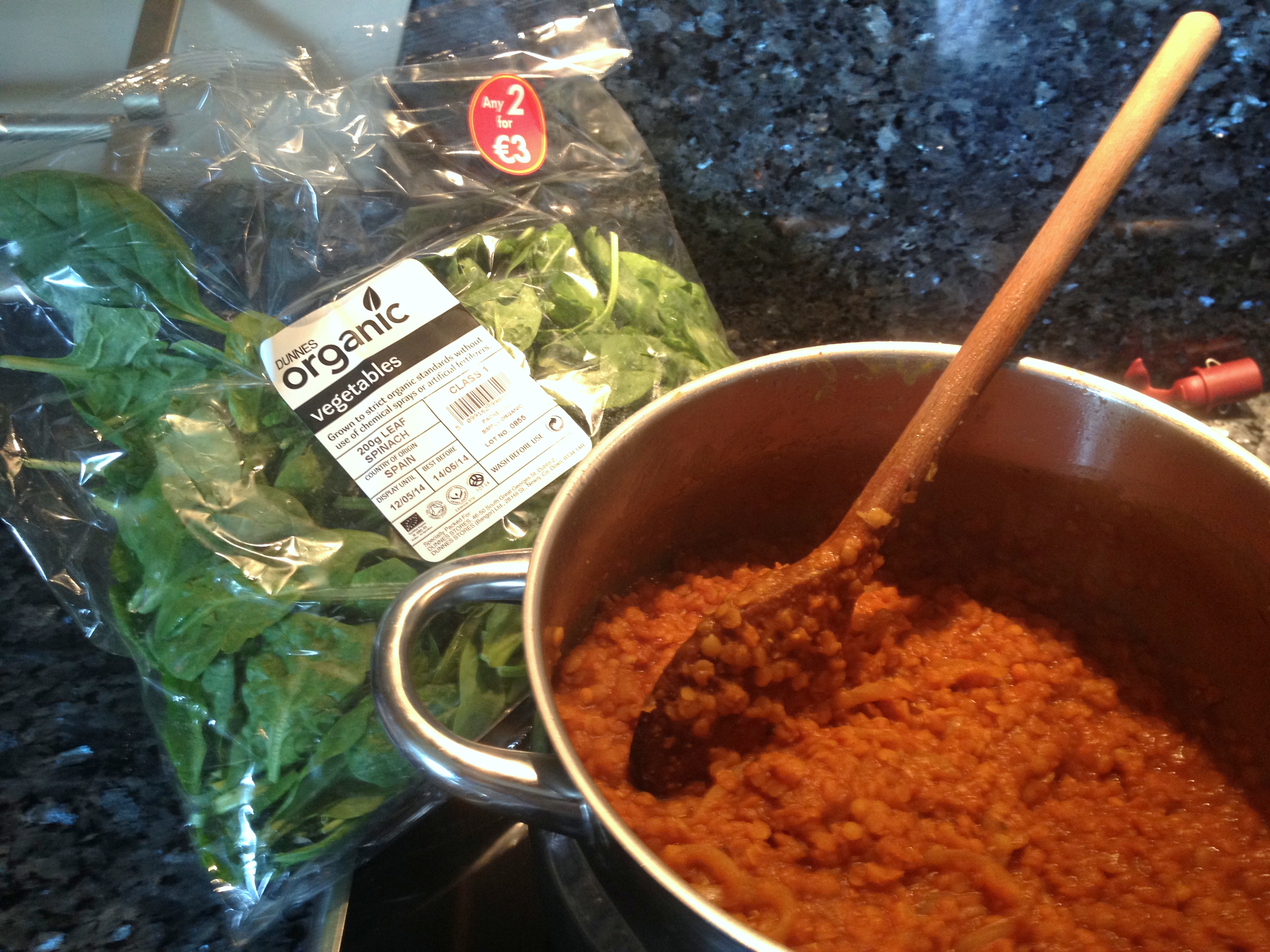 1. Wash the lentils in cold water until the water runs clear. Put lentils in a pot with enough water to cover; bring to a boil, place a cover on the pot, reduce heat to medium-low, and simmer. You will probably need to add more water during cooking to keep the lentils covered and prevent them burning. I simmered these for just fifteen minutes before adding the other ingredients and then completing their cooking to allow the spices to infuse better. (Some people may prefer to cook the lentils completely through and then toss all the other ingredients in at the end).